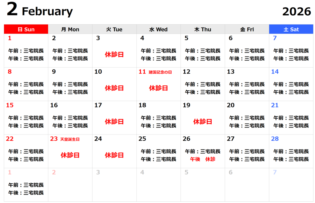 尚、都合により2/19(木)は休診とさせて頂きます。