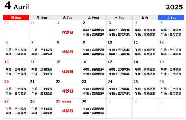 4月の外来担当医をお知らせいたします。
